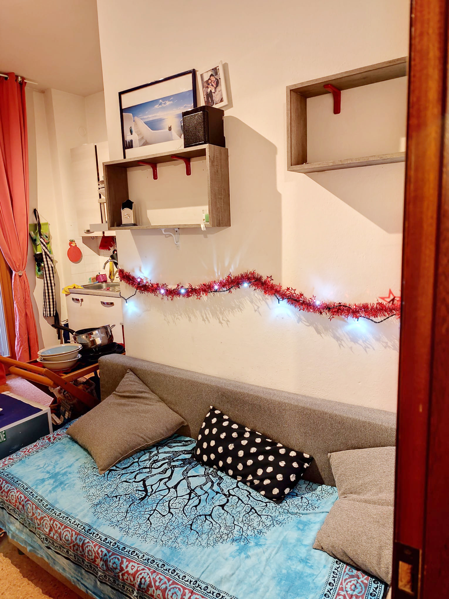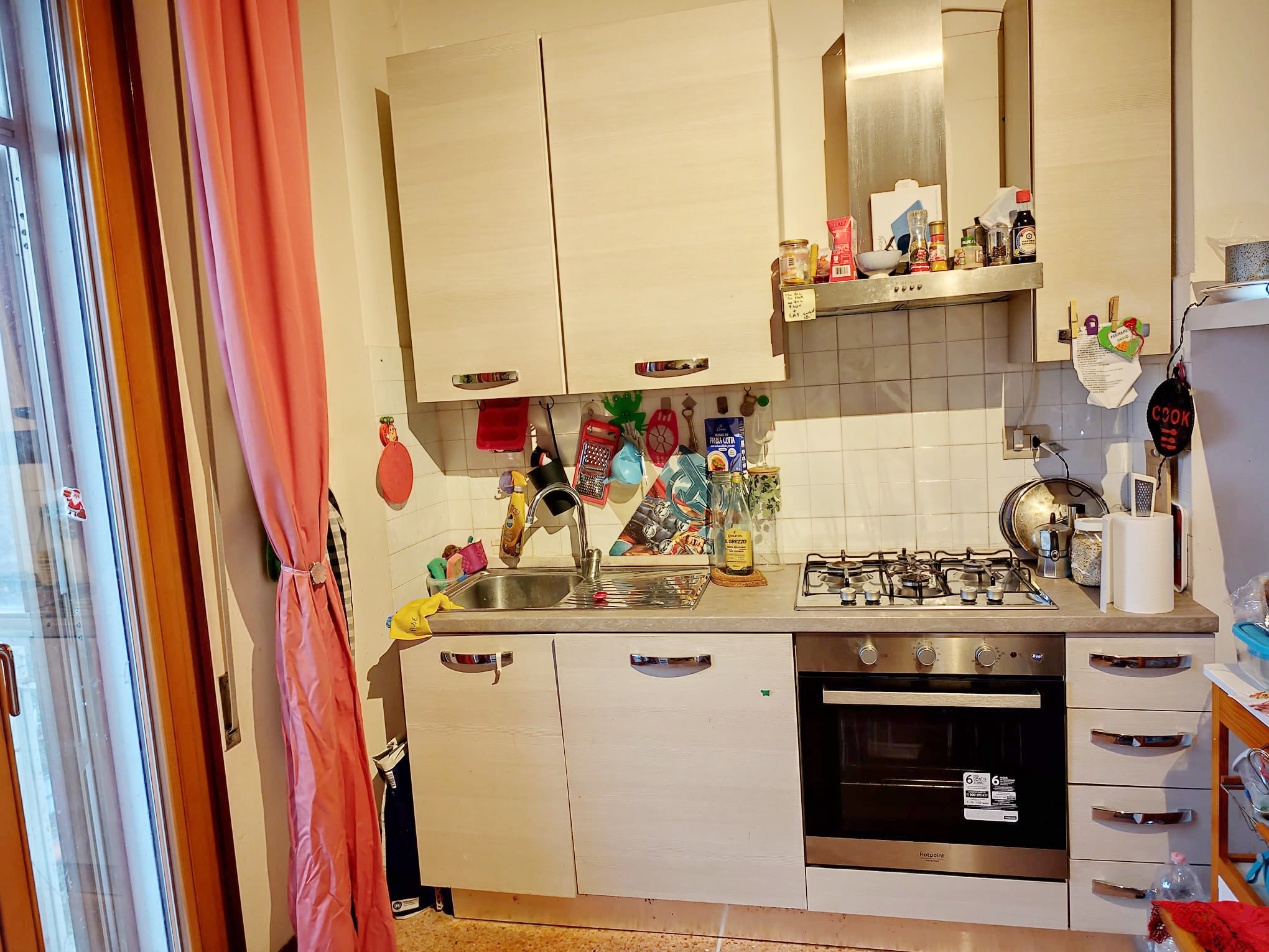 Soggiorno con angolo cottura e accesso al balcone